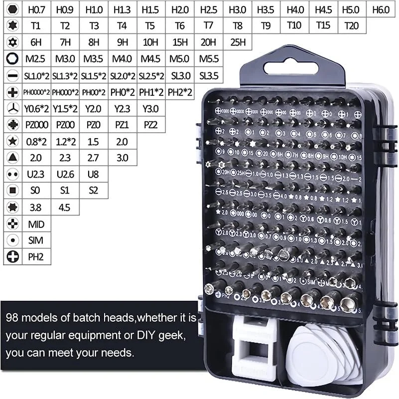 - [Multi-Magnetic Screwdriver Set] :115 in 1 Precision Screwdriver Set has more tools, Comes with all the necessary tools for a wide variety of jobs. Perfect for repairing laptops, mobile devices and other precision items like wristwatches and eyeglasses. Lightweight and compact design